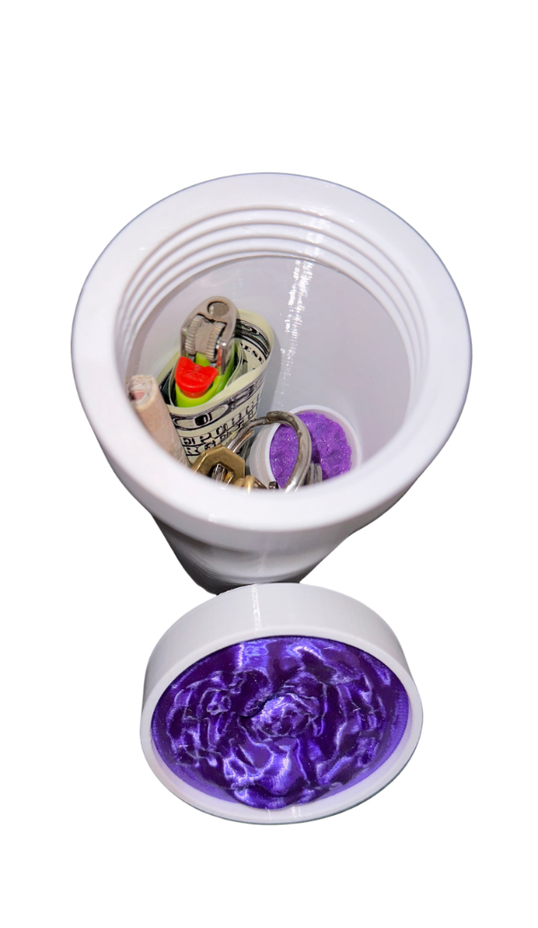 Incluye compartimiento secreto con cierre a rosca anti-olor