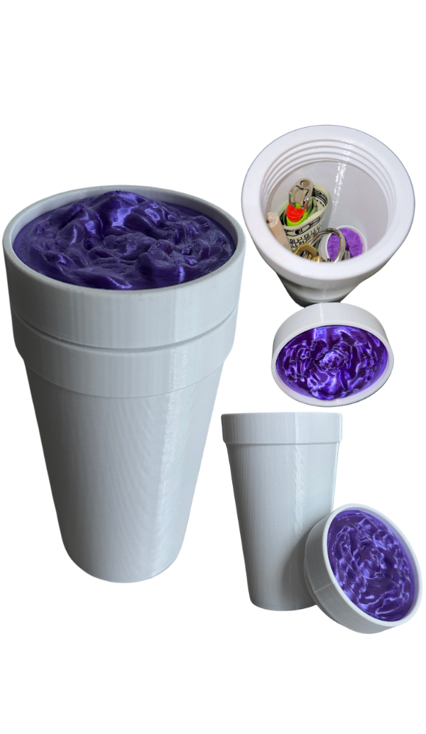Doble vaso impreso en 3D con tapa a rosca en la base